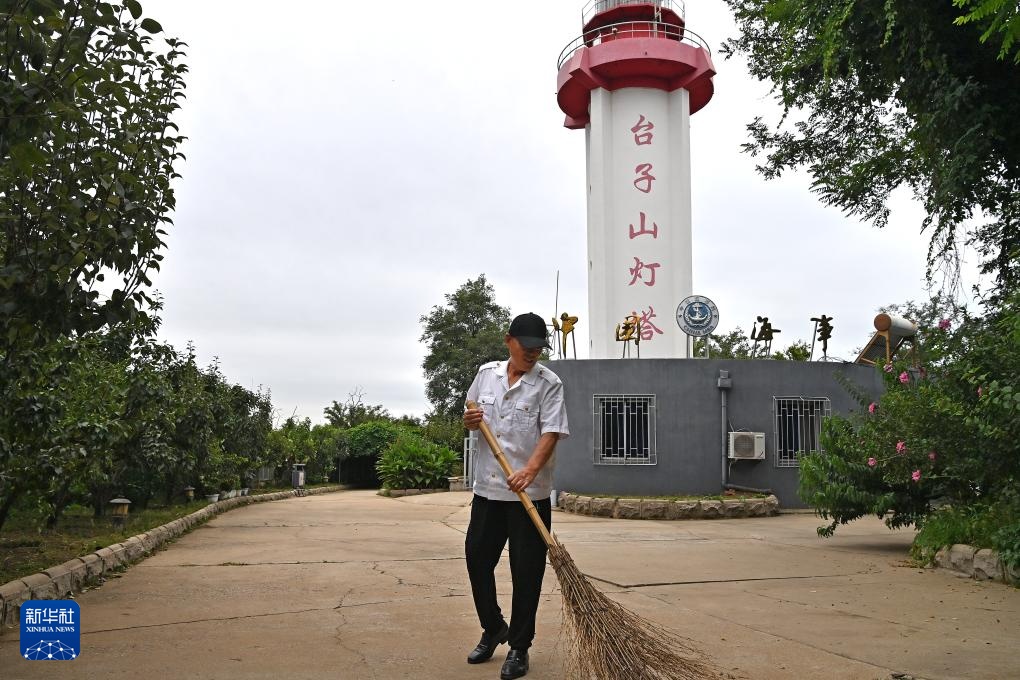 9月10日,王洪安在台子山灯塔院内清扫道路。