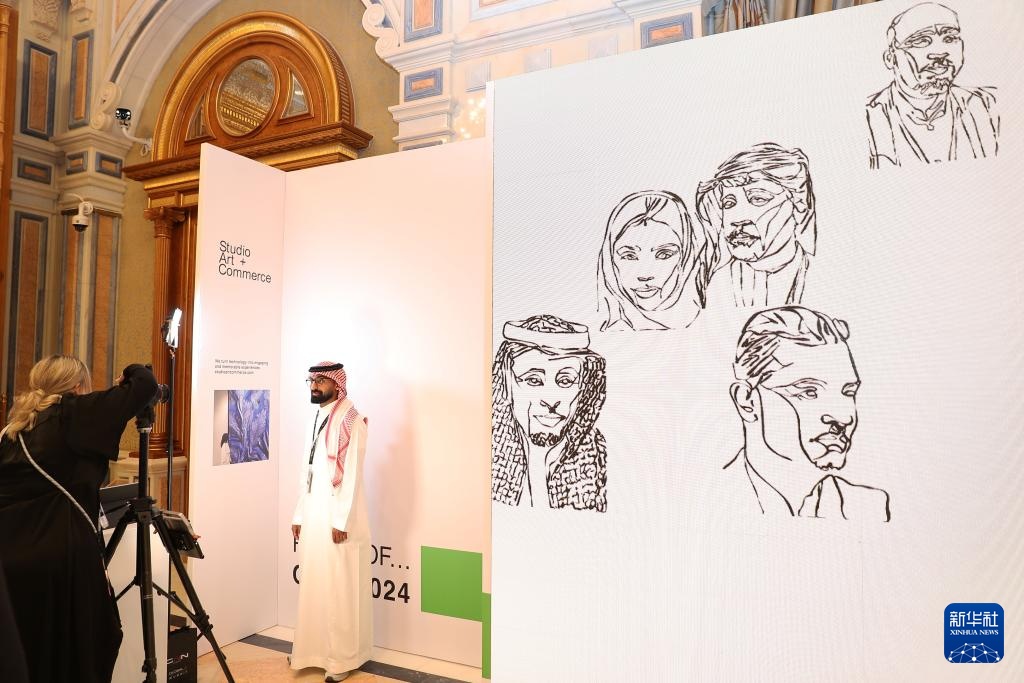 9月10日,在沙特阿拉伯首都利雅得举行的第三届全球人工智能峰会上,参会者体验人工智能绘画。