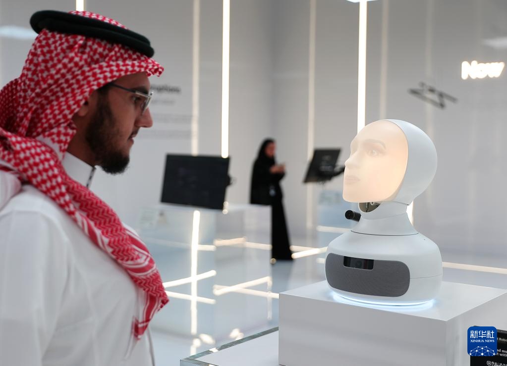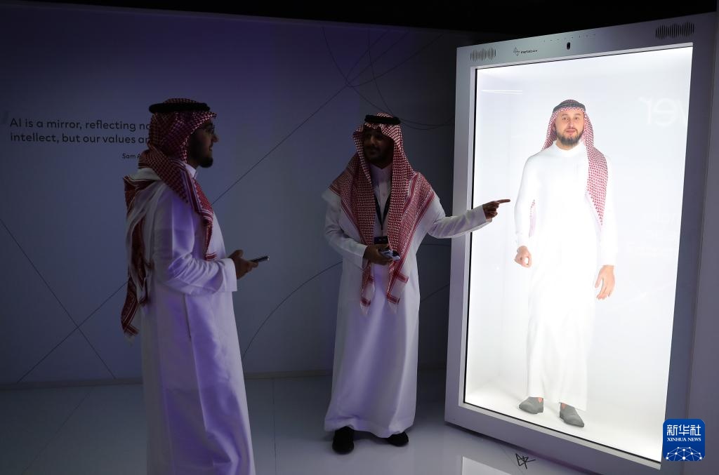 9月12日,在沙特阿拉伯首都利雅得举行的第三届全球人工智能峰会上,参会者体验AI人机对话。