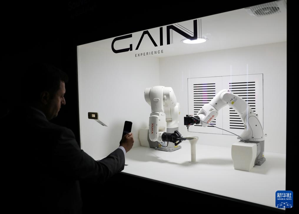 9月10日,在沙特阿拉伯首都利雅得举行的第三届全球人工智能峰会上,机械臂为人们制作饮品。