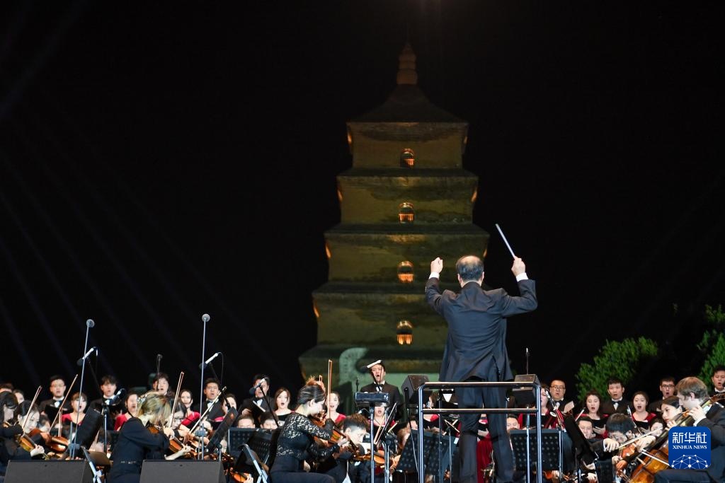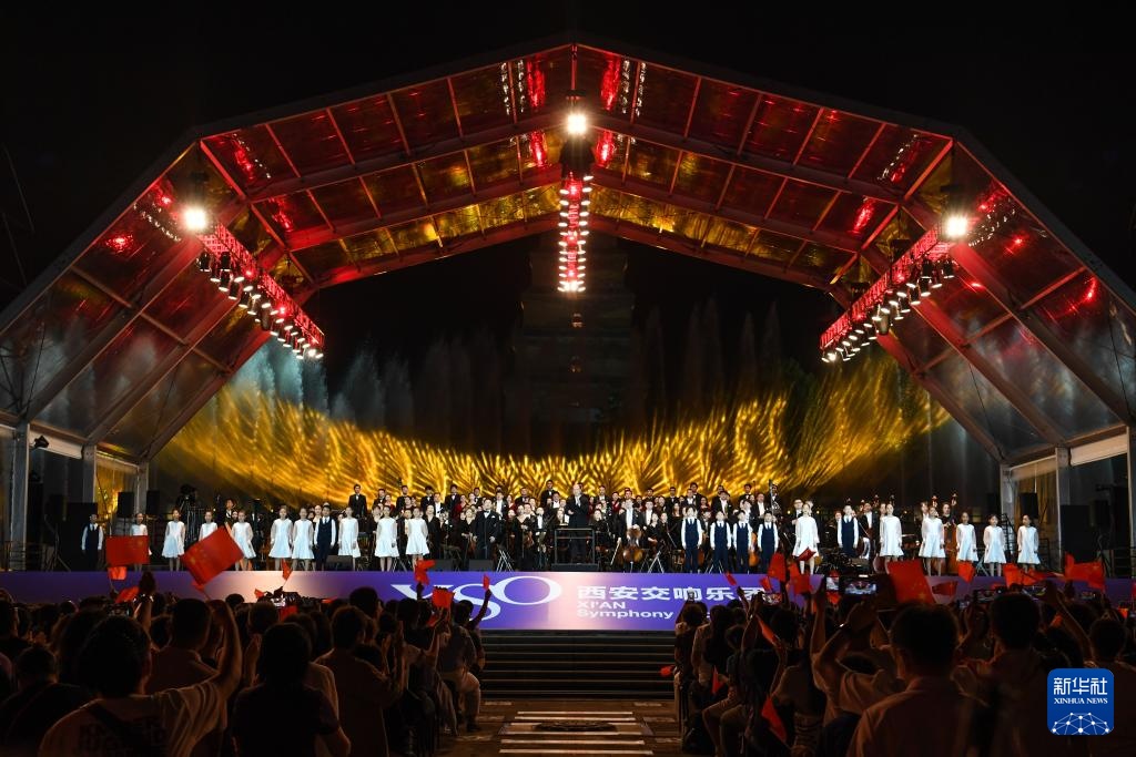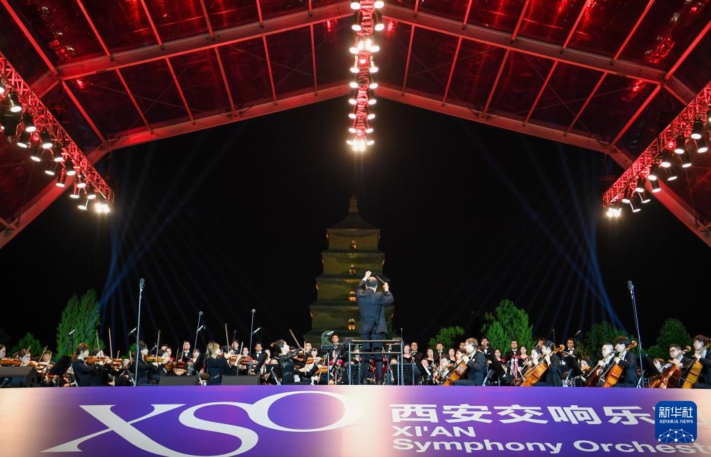 这是9月13日拍摄的2024西安交响乐团大雁塔户外公演现场。
