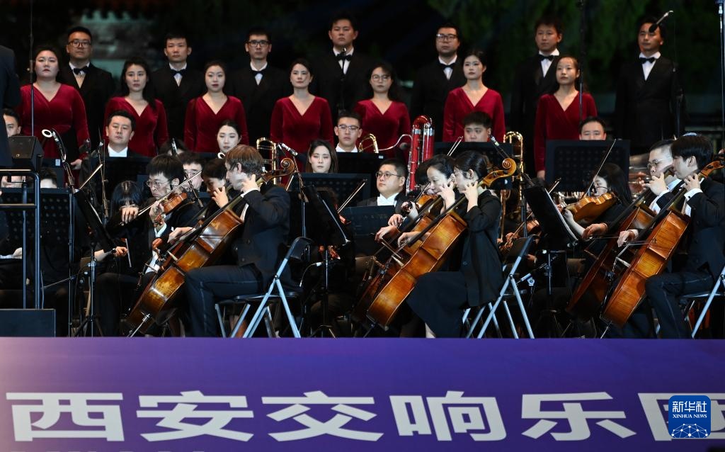 9月13日晚,2024西安交响乐团大雁塔户外公演举行,西安交响乐团、西安交响乐团合唱团、西安音乐厅童声合唱团携手演绎,为观众献上古典音乐盛宴。