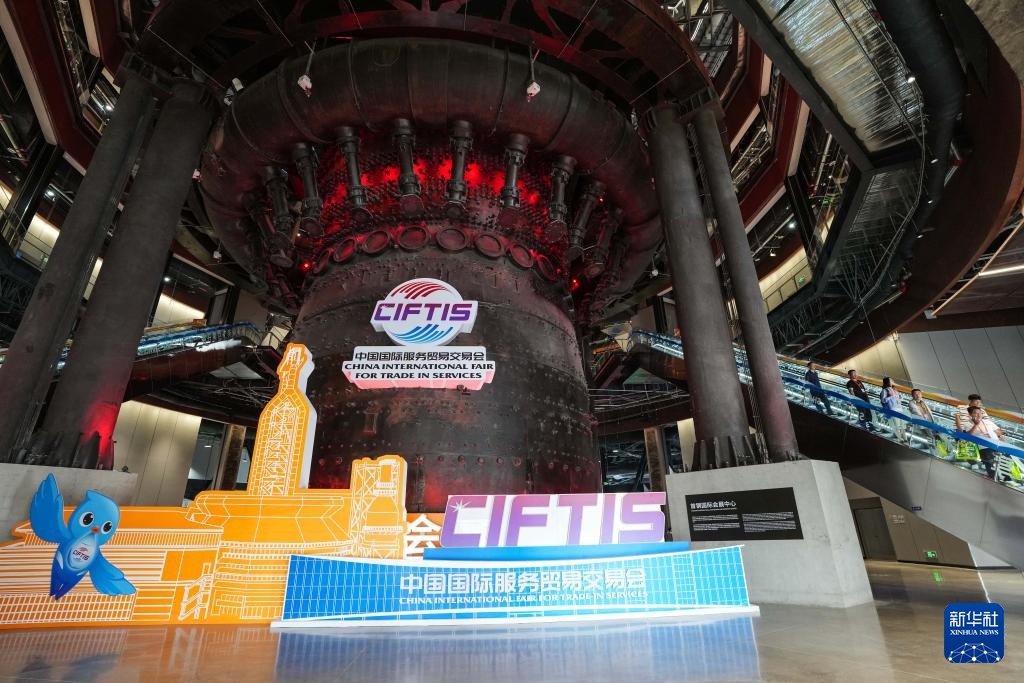 在2024年中国国际服务贸易交易会首钢园展区内,展馆和工业遗存交相融合(9月13日摄)。