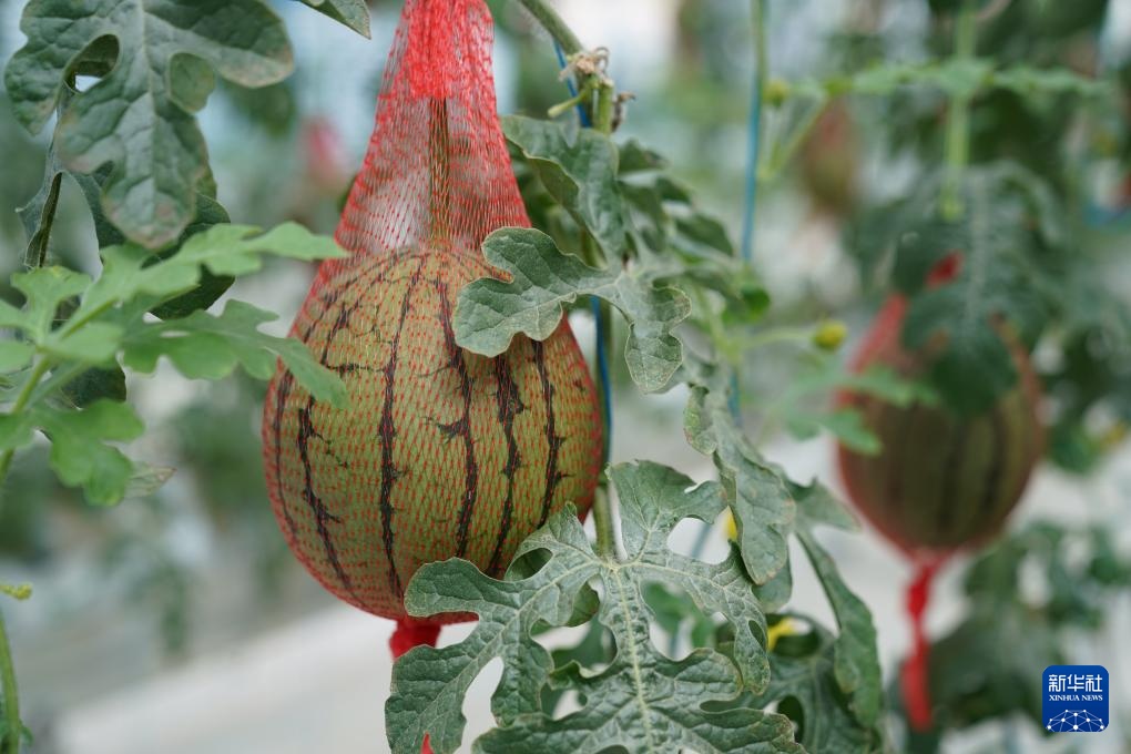 这是9月13日拍摄的理塘县现代农业园区智慧农业无土栽培馆内种植的西瓜。