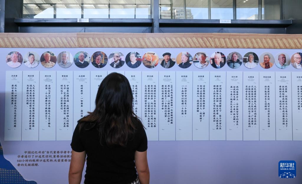 9月14日,在北京国家图书馆,一名女士在回顾展上参观。