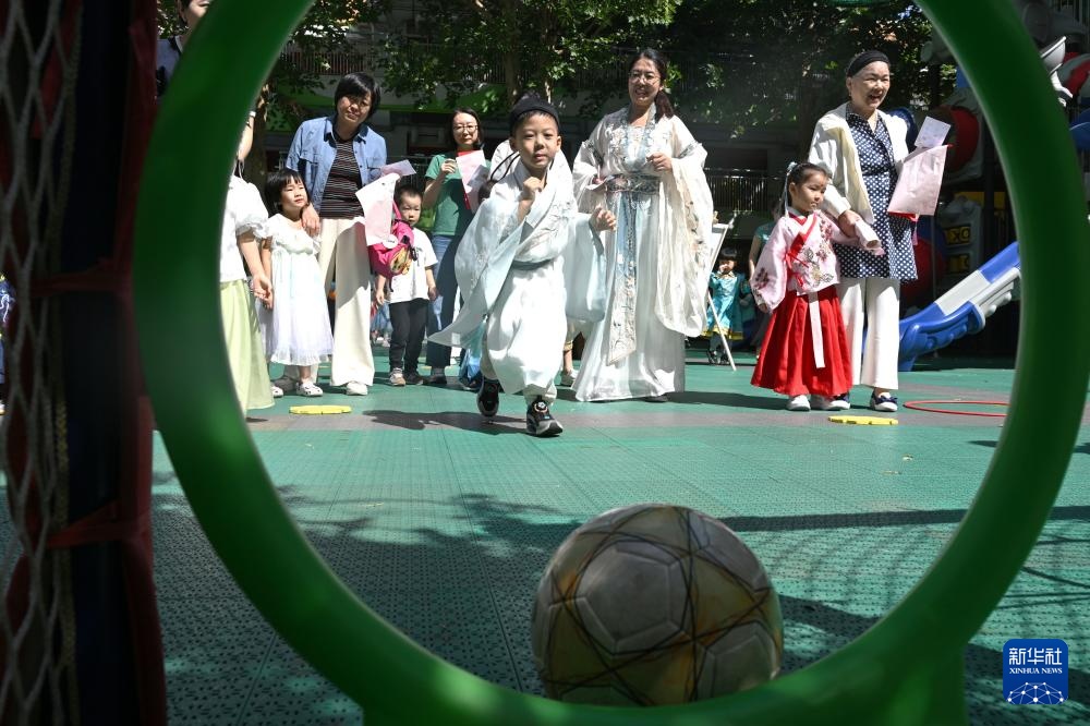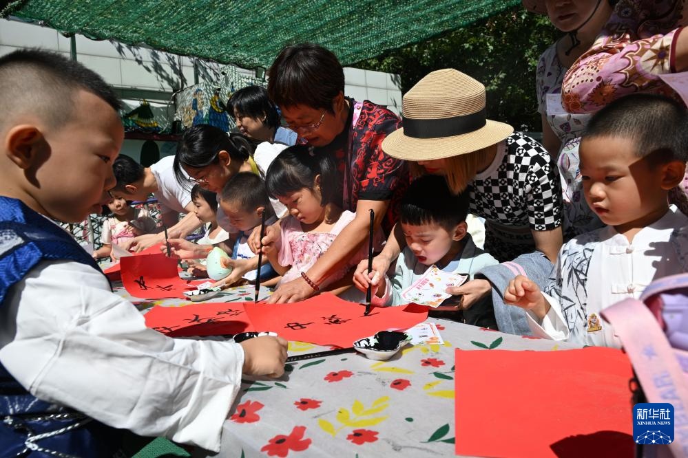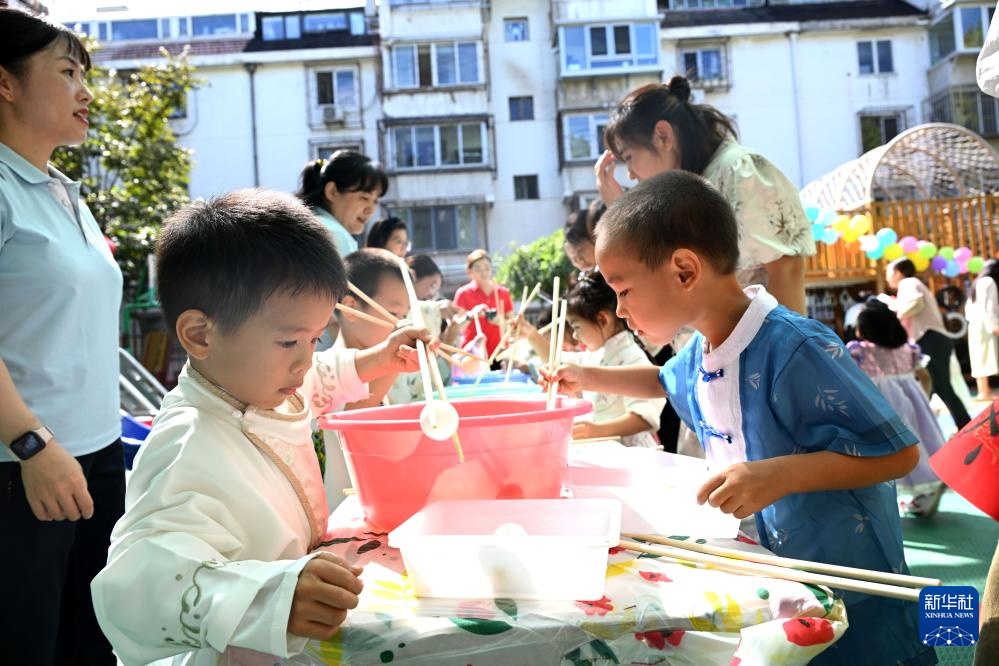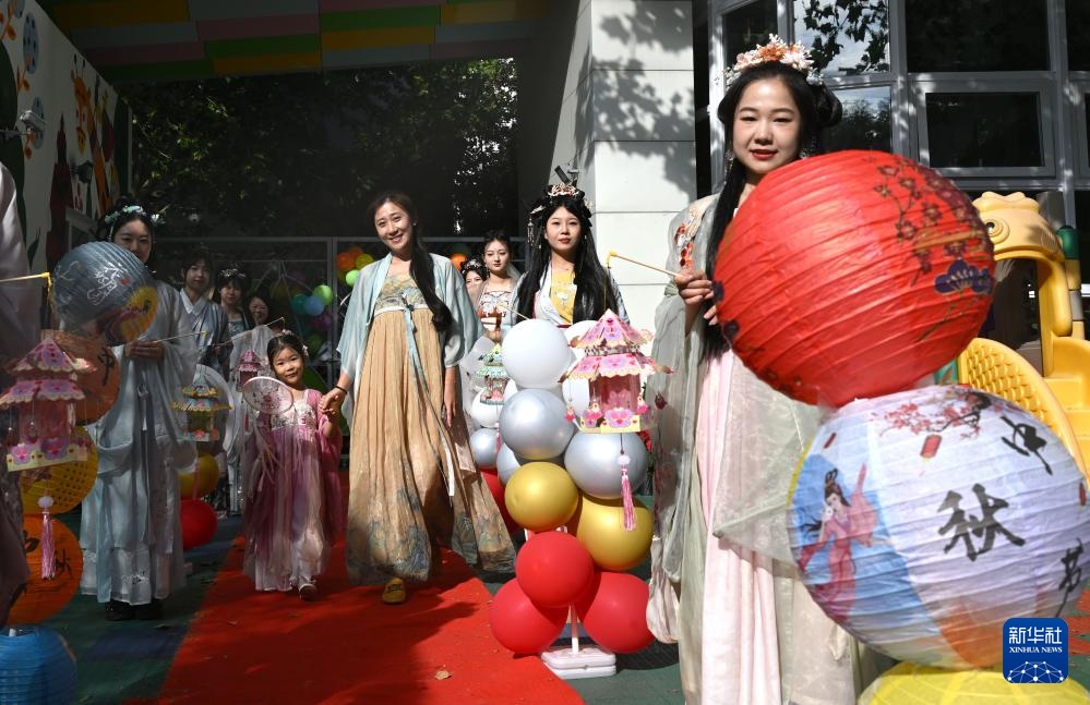 当日,北京市东城区欣苑幼儿园举办亲子游园活动,孩子们身着汉服,挂灯笼、写心愿,在亲子互动游戏中增进感情,体验传统文化,迎接即将到来的中秋佳节。