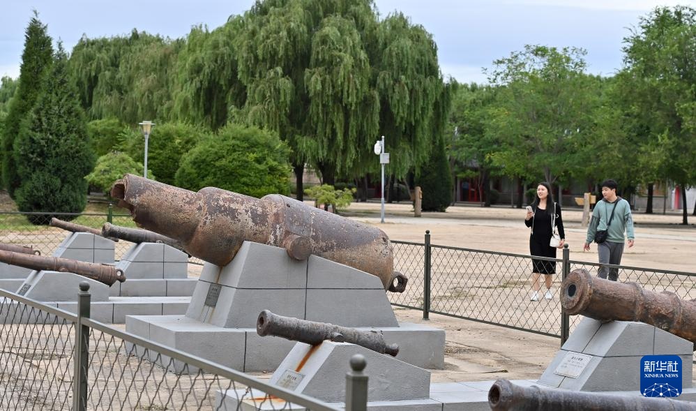 这是9月10日拍摄的营口西炮台遗址展出的各类火炮(无人机照片)。