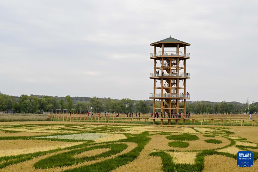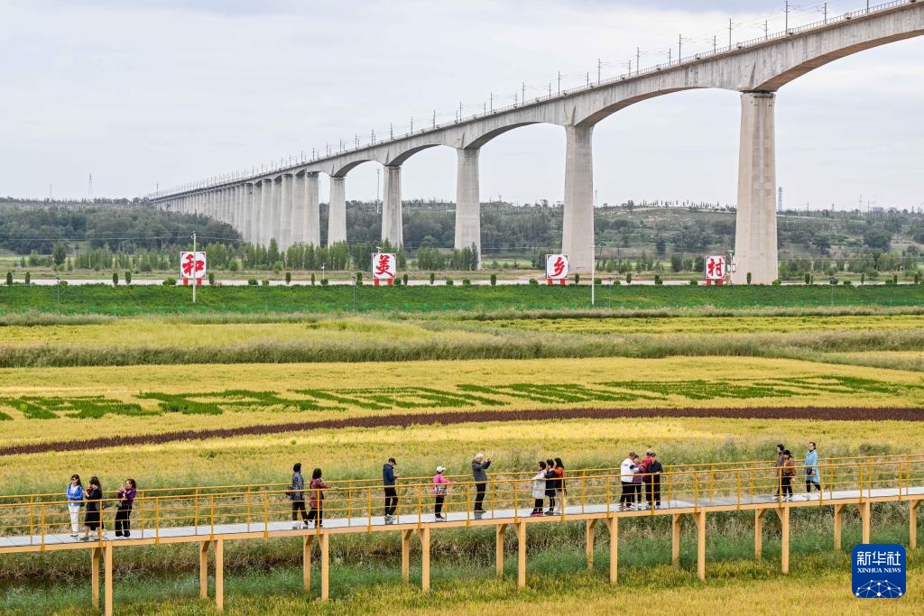 在内蒙古准格尔旗大路镇小滩子村,当地打造的黄河稻渔生态观光园近日吸引了众多游客前来游览。这里南邻库布其沙漠,北伴滔滔黄河,呼准鄂铁路、呼大高速横跨而过,形成了独特的综合景观。