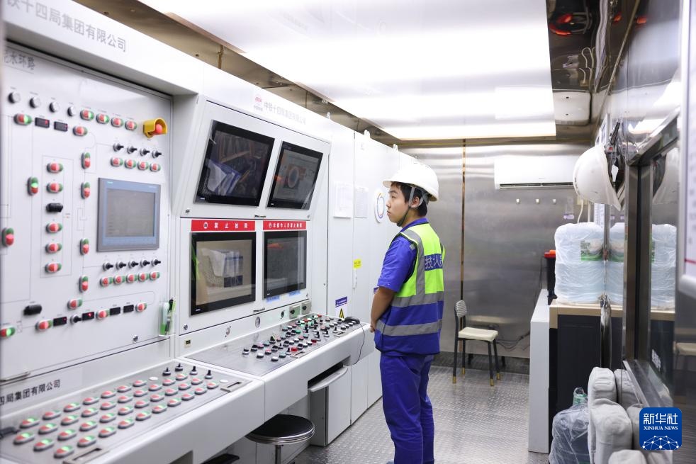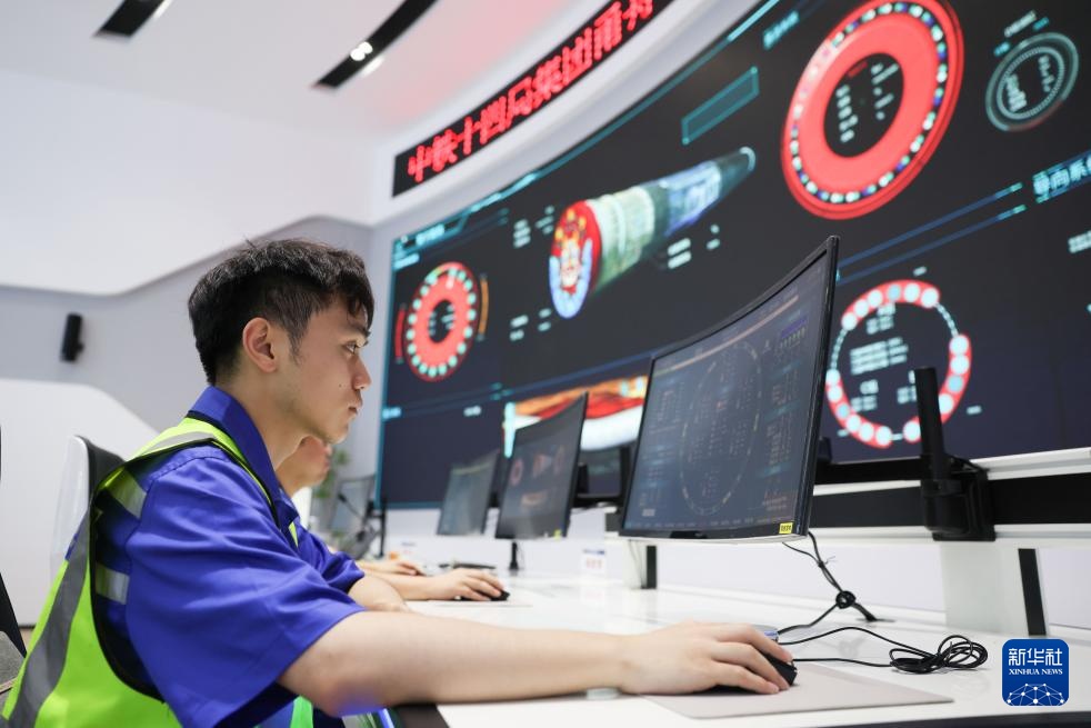 9月14日,中铁十四局技术人员在甬舟铁路金塘海底隧道“甬舟号”盾构机操作室关注设备运行情况。