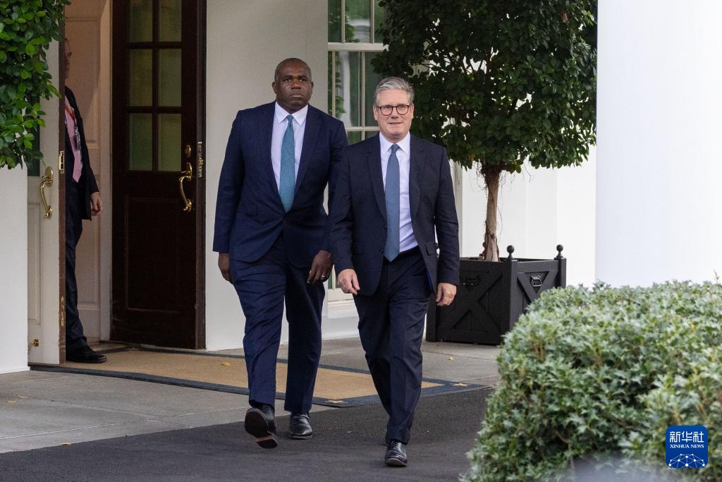 9月13日,在美国首都华盛顿,英国首相斯塔默(右)和外交大臣戴维·拉米在与美国总统拜登会晤后走出白宫。