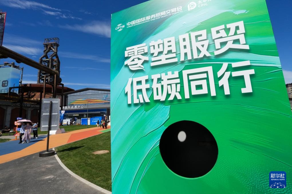 这是首钢园展区内的一个塑料瓶回收处(9月14日摄)。