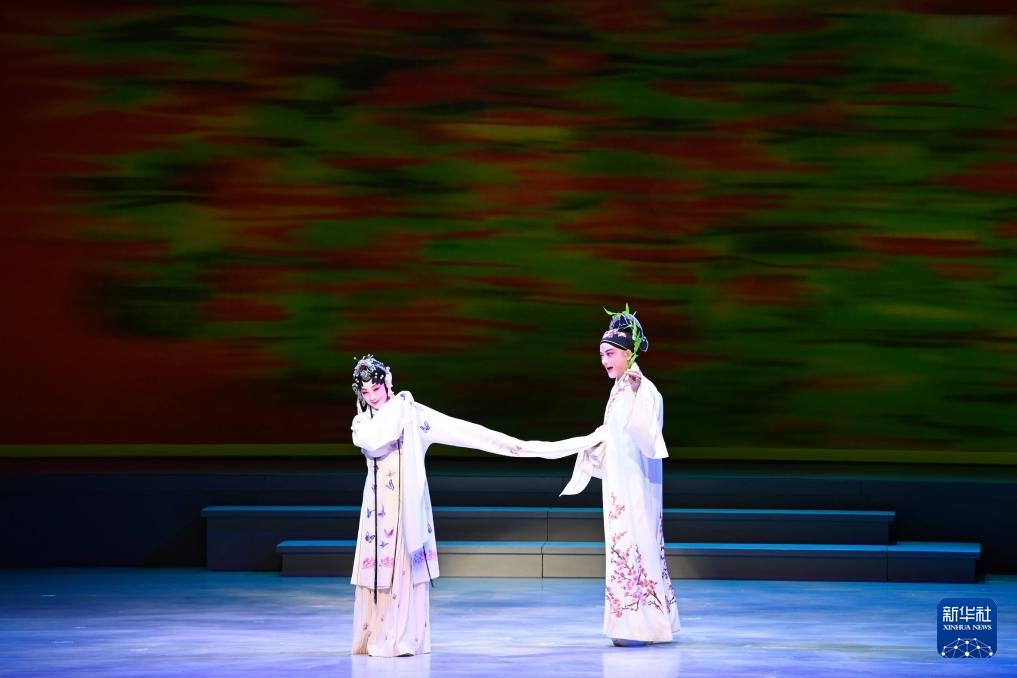 9月14日,饰演杜丽娘的沈丰英与饰演柳梦梅的俞玖林(左)在青春版《牡丹亭》演出中。