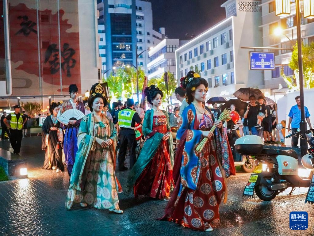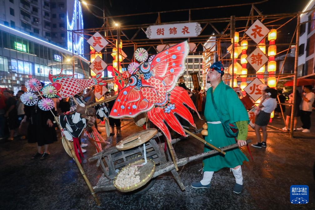 9月14日晚,经综合整治提升后的浙江省杭州市临安区衣锦街以一场开街仪式、两场国风主题巡游、三大主题文化市集和八天国潮街头演绎活动焕新亮相,用传统国风氛围迎接中秋佳节,吸引市民游客前来感受老街蝶变后的崭新风貌。