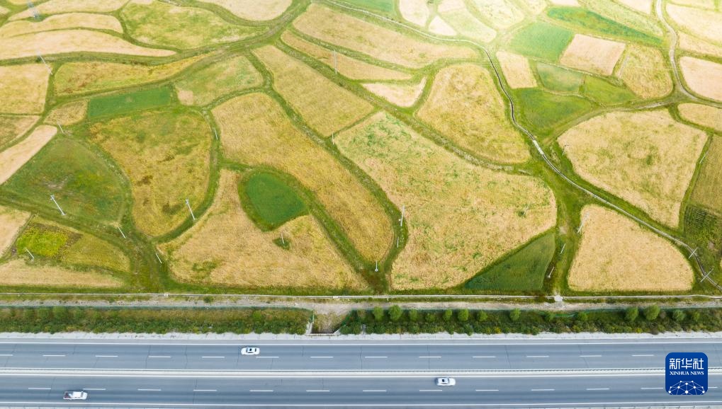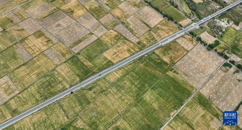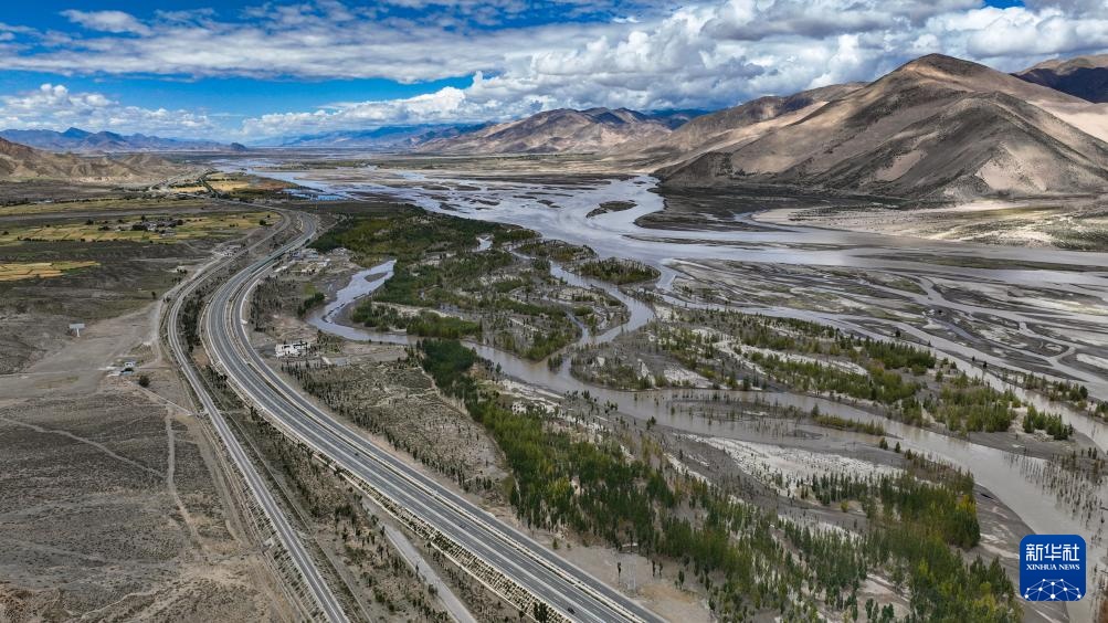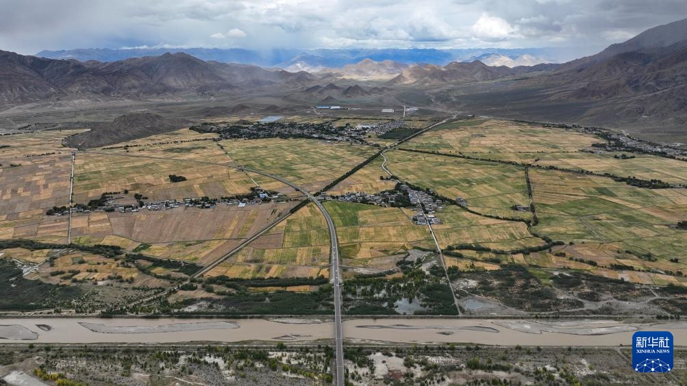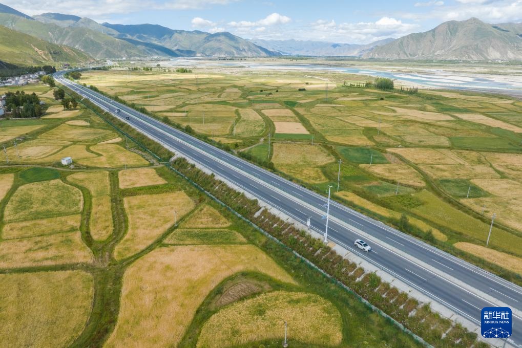 从空中俯瞰西藏拉萨至日喀则高等级(高速)公路南木林段(9月11日摄,无人机照片)。