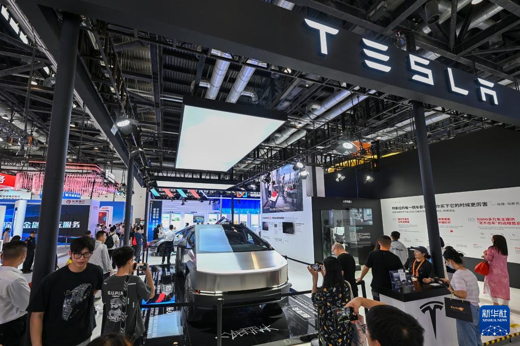 这是9月15日在服贸会国家会议中心展区拍摄的特斯拉展台。