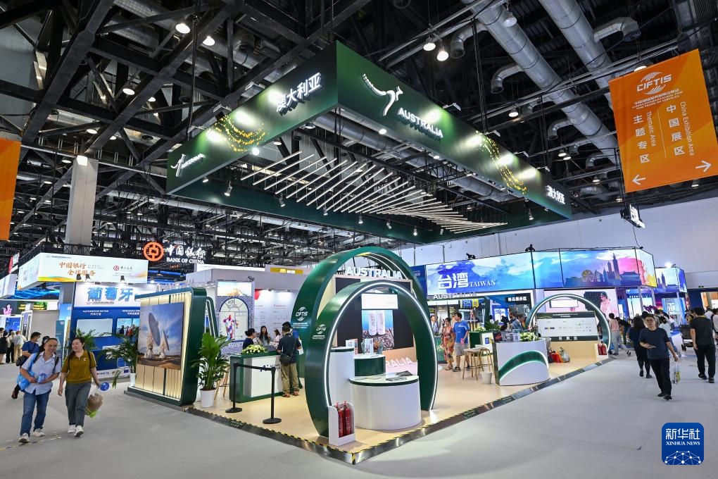 这是9月15日在服贸会国家会议中心展区拍摄的澳大利亚展台。