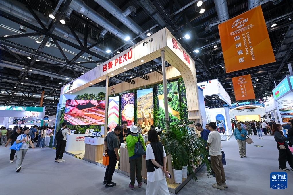 这是9月15日在服贸会国家会议中心展区拍摄的秘鲁展台。