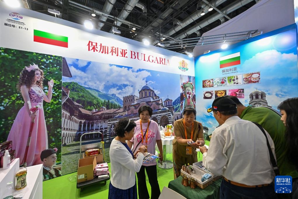 这是9月15日在服贸会国家会议中心展区拍摄的保加利亚展台。