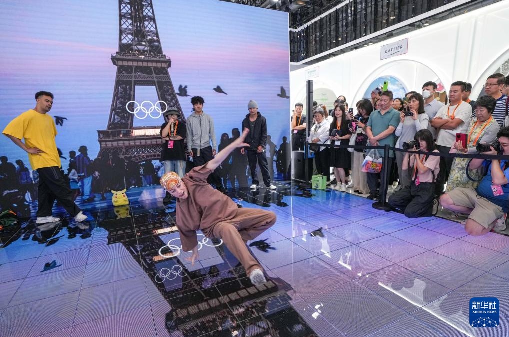 9月14日,在2024年服贸会国家会议中心综合展区的主宾国法国展台,中法两国街舞好手在表演霹雳舞。