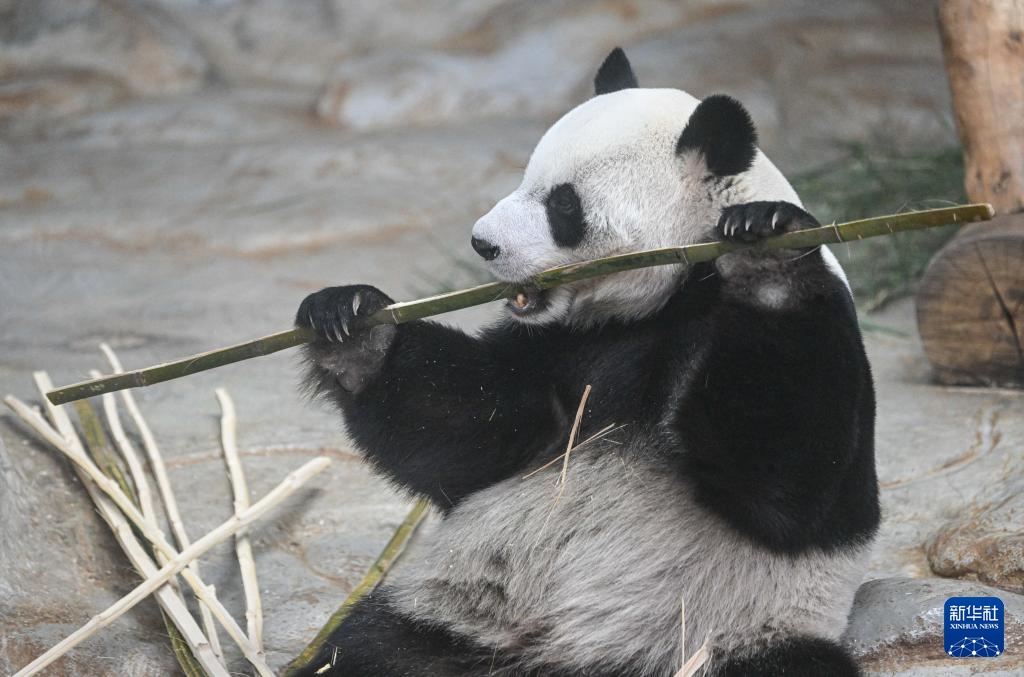 9月14日,在位于海南省海口市的海南热带野生动植物园,大熊猫“舜舜”在吃竹子。