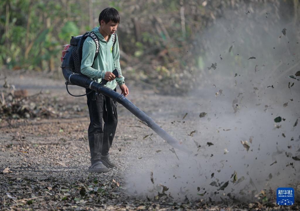 9月14日,工作人员在位于海南省海口市的海南热带野生动植物园清理落叶。