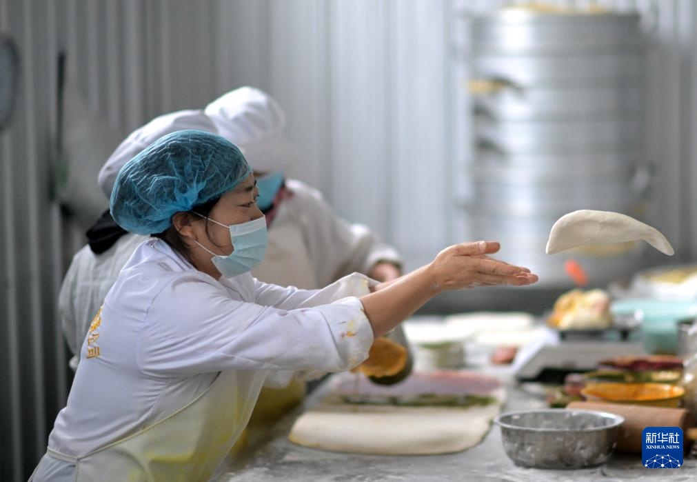 9月15日,在青海省海东市互助土族自治县东山乡白牙合村,一名土族群众在制作月饼。