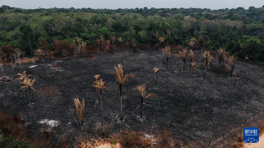 这是9月12日在巴西朗多尼亚州波多韦柳拍摄的一处发生过火灾的地点(无人机照片)。