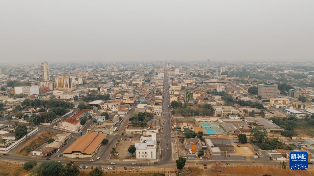 这是9月12日在巴西朗多尼亚州波多韦柳拍摄的被烟雾笼罩的城市建筑和街道(无人机照片)。