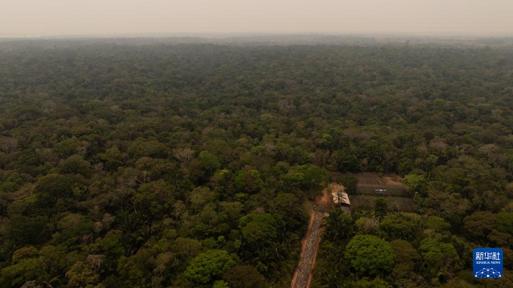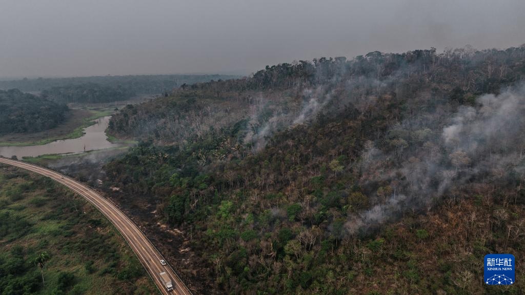 这是9月12日在巴西朗多尼亚州波多韦柳拍摄的被烟雾笼罩的亚马孙森林(无人机照片)。