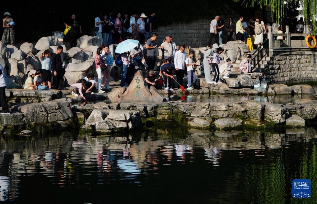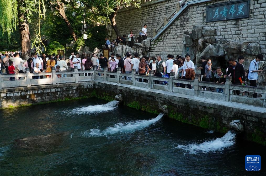 中秋小长假期间,泉城济南的各处名泉泉水喷涌有力,吸引游客前来观泉游览。