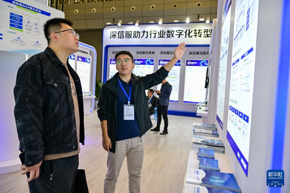 9月20日,在新疆国际会展中心举行的新疆数字丝路博览会现场,参观者在了解网络安全相关知识。
