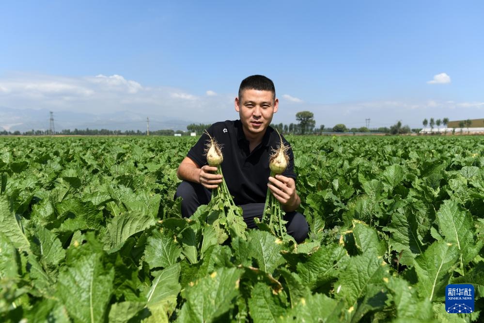 吕梁山下,文峪河边,山西省文水县北张乡的农田里,“新农人”赵永壮在地里忙碌,仔细查看芥菜的生长情况。一个多月前,这片地里种植的土豆迎来了丰收。土豆刚收获入库,3000亩芥菜的种植又拉开了序幕。