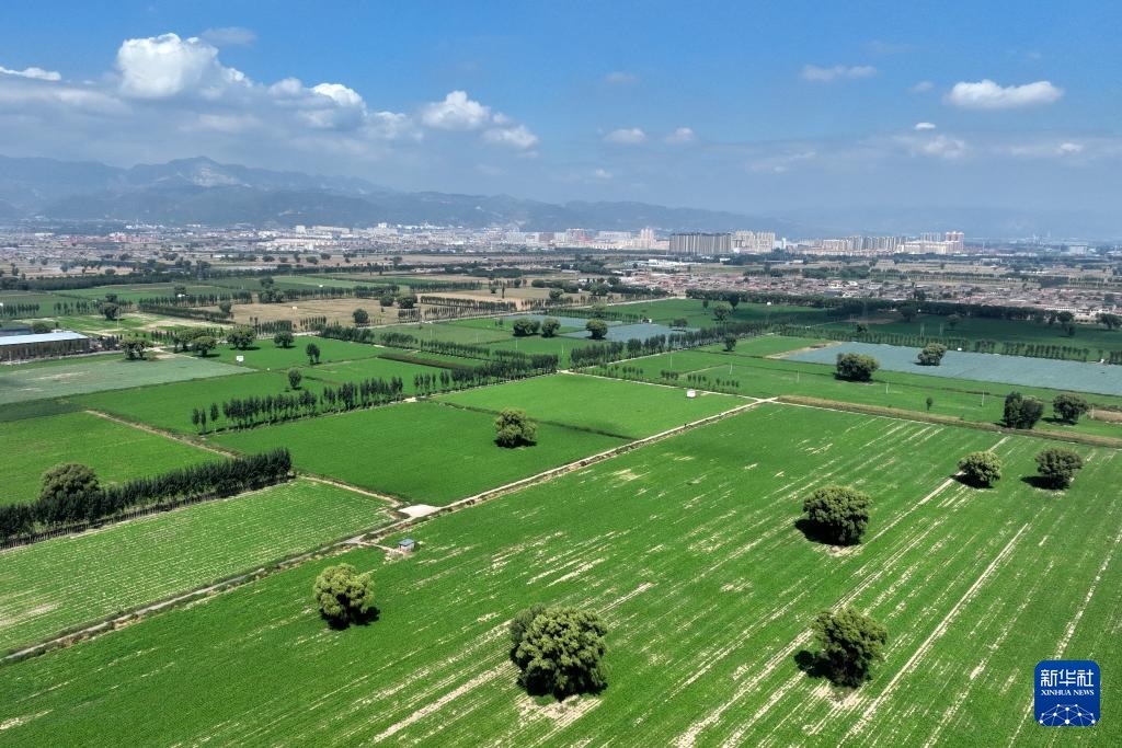 “新农人”赵永壮在文水县北张乡流转的土地上种植的芥菜(9月20日摄,无人机照片)。