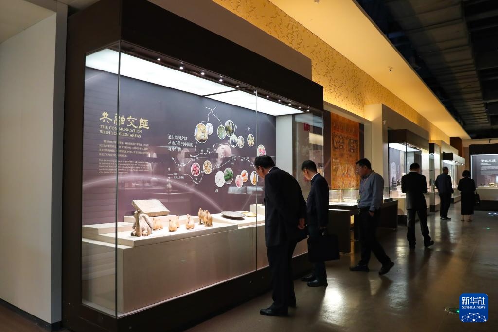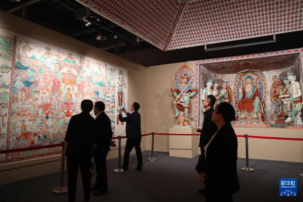 9月21日,与会嘉宾在第七届丝绸之路(敦煌)国际文化博览会上参观敦煌研究院“典范”“高地”建设成果展。