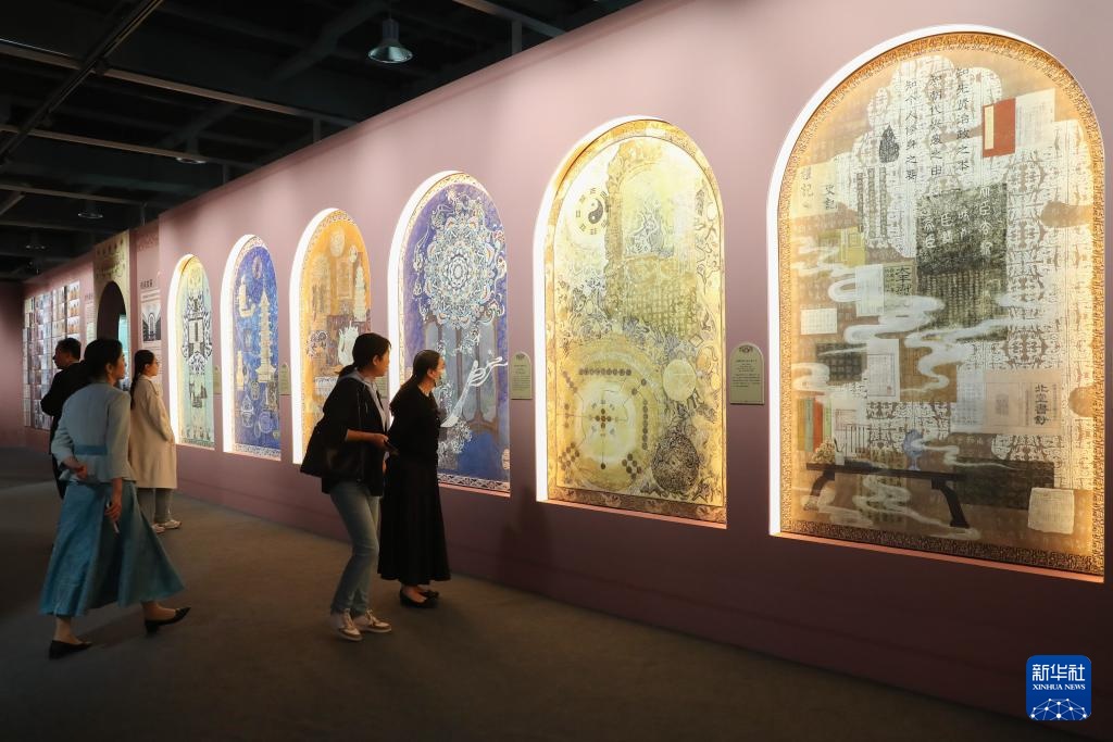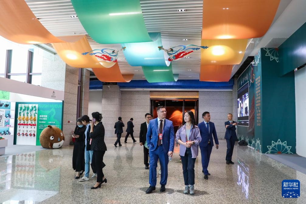 9月21日,与会嘉宾在第七届丝绸之路(敦煌)国际文化博览会上参观丝绸之路文化融合展。