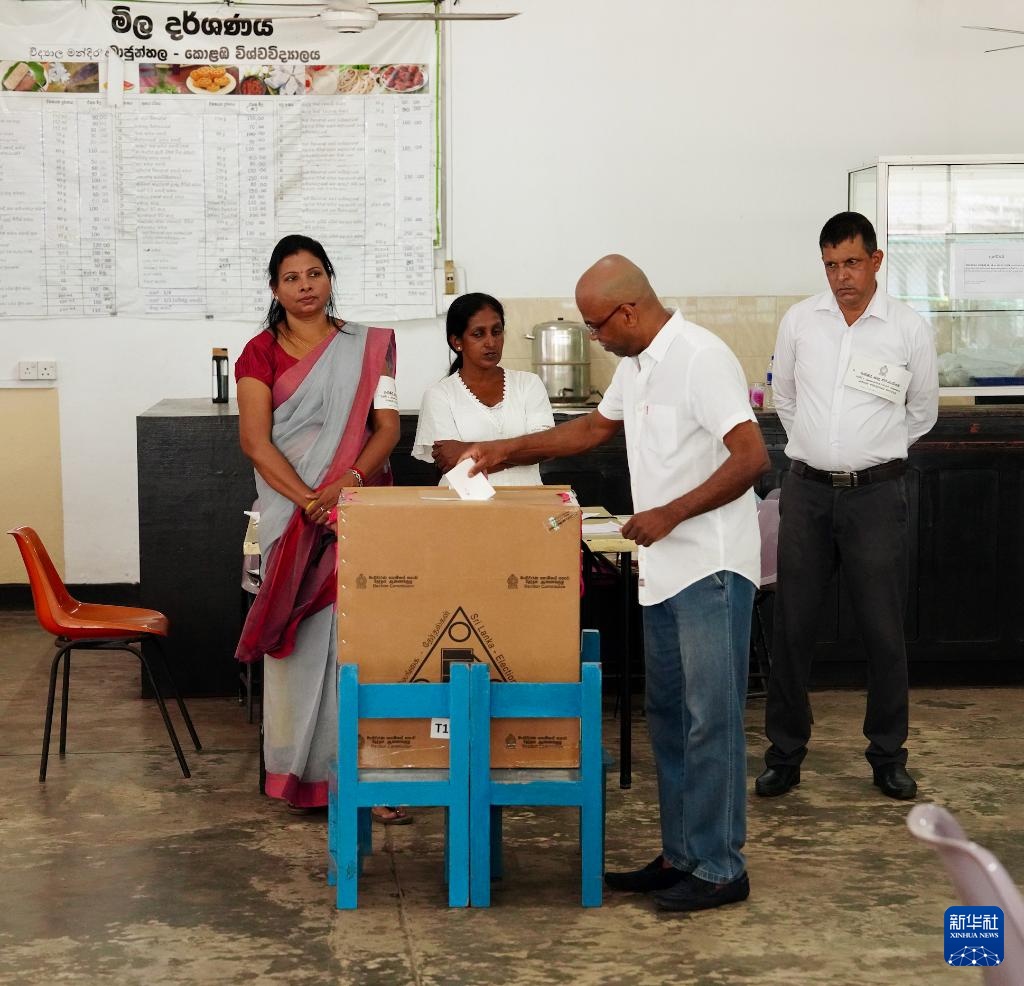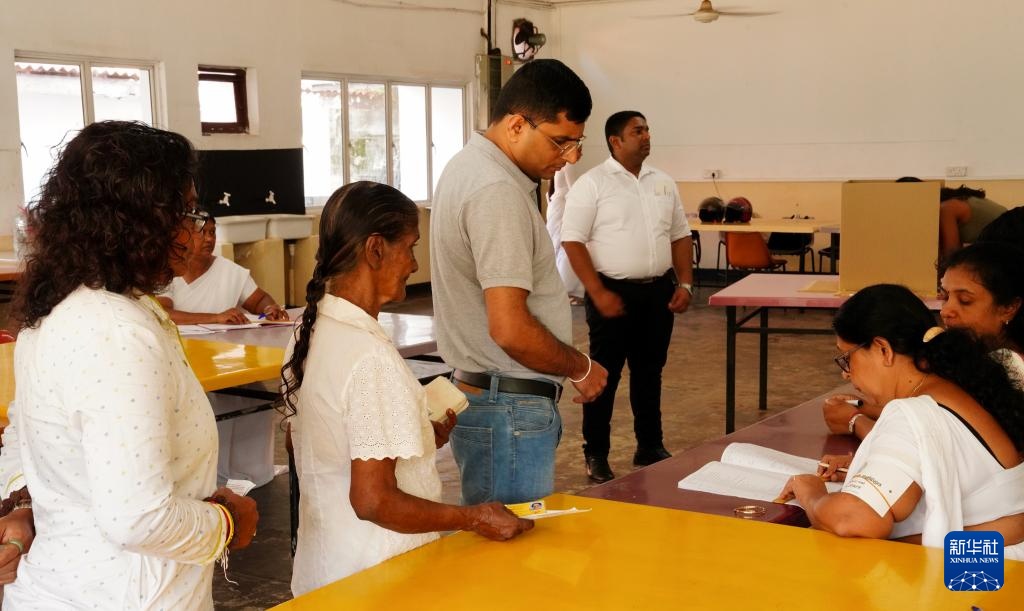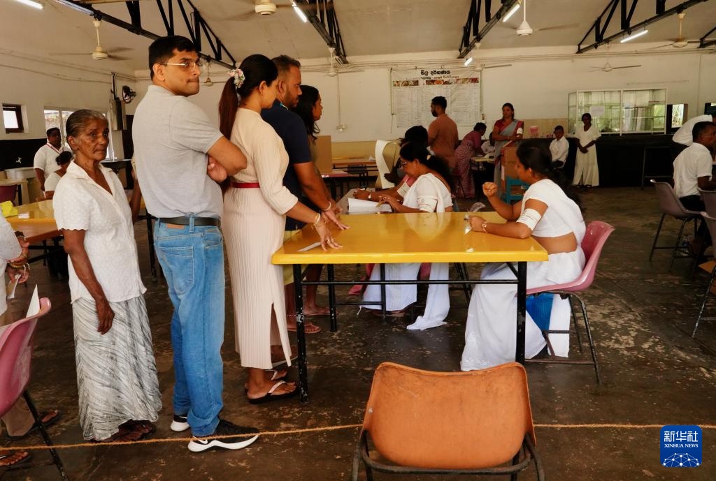 9月21日,人们在斯里兰卡科伦坡的投票站内进行投票。
