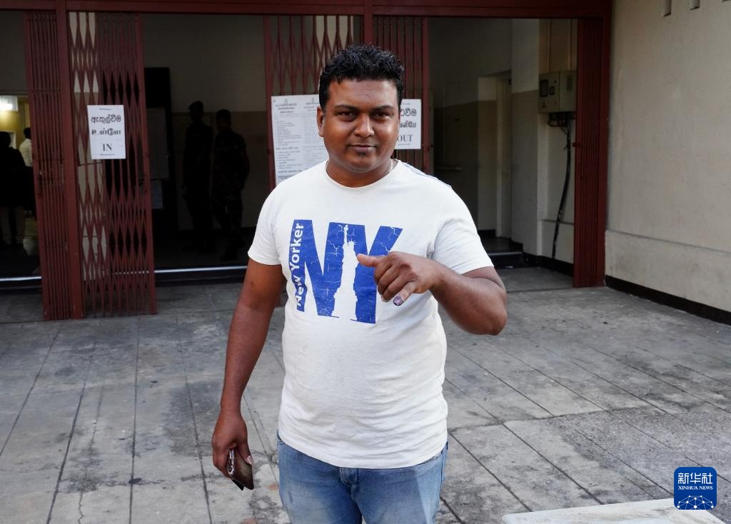 9月21日,在斯里兰卡科伦坡,一名男子在投票后将手指涂上颜料。