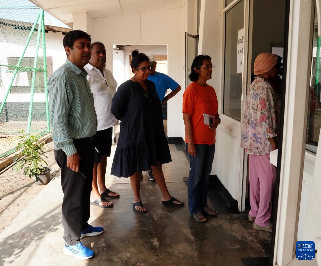 9月21日,人们在斯里兰卡科伦坡的投票站外排队等候。
