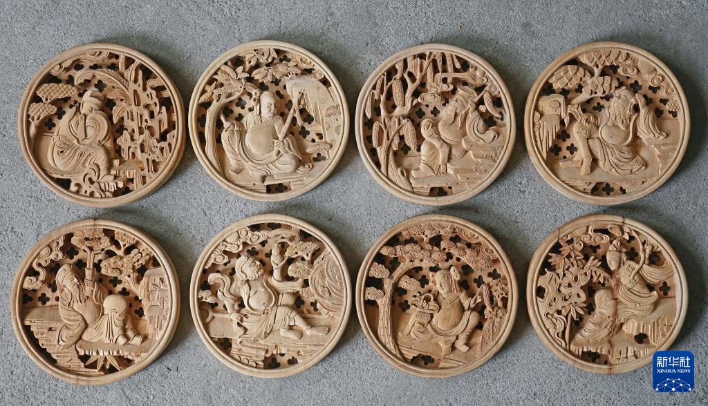 这是木雕作品《八仙》(9月20日摄)。