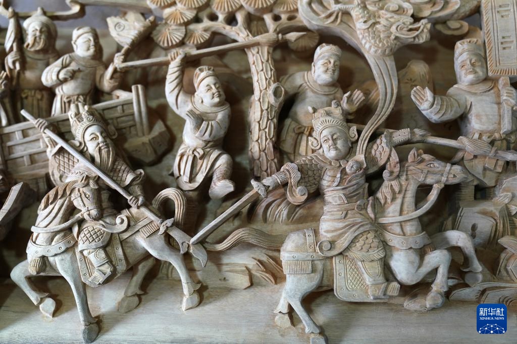 这是木雕作品《长坂坡》的一处细节(9月20日摄)。
