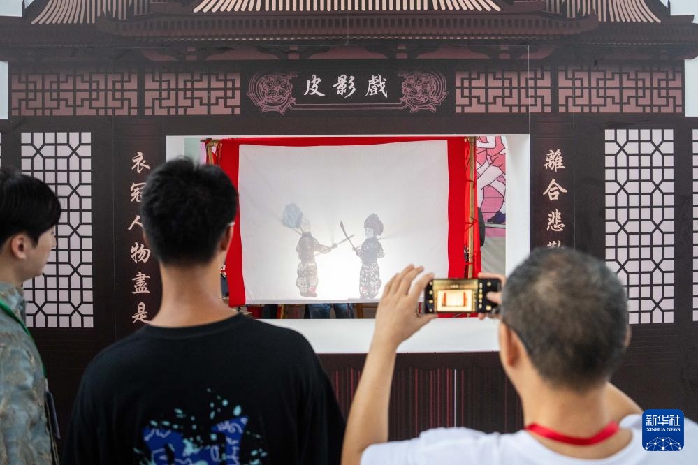 9月21日,在第三届湖南非遗博览会上,观众在观看皮影戏。