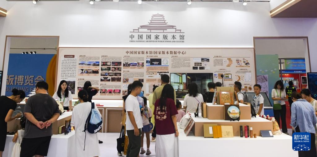 9月21日,观众在第十四届中国国际数字出版博览会上的中国国家版本馆展台参观。