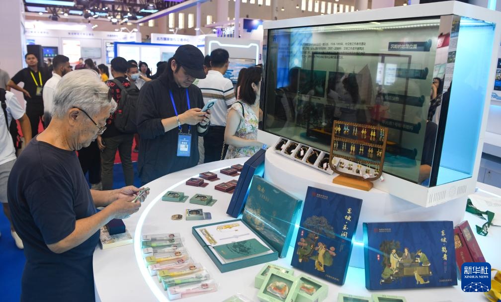 9月21日,观众在第十四届中国国际数字出版博览会上的海南展团展台参观。