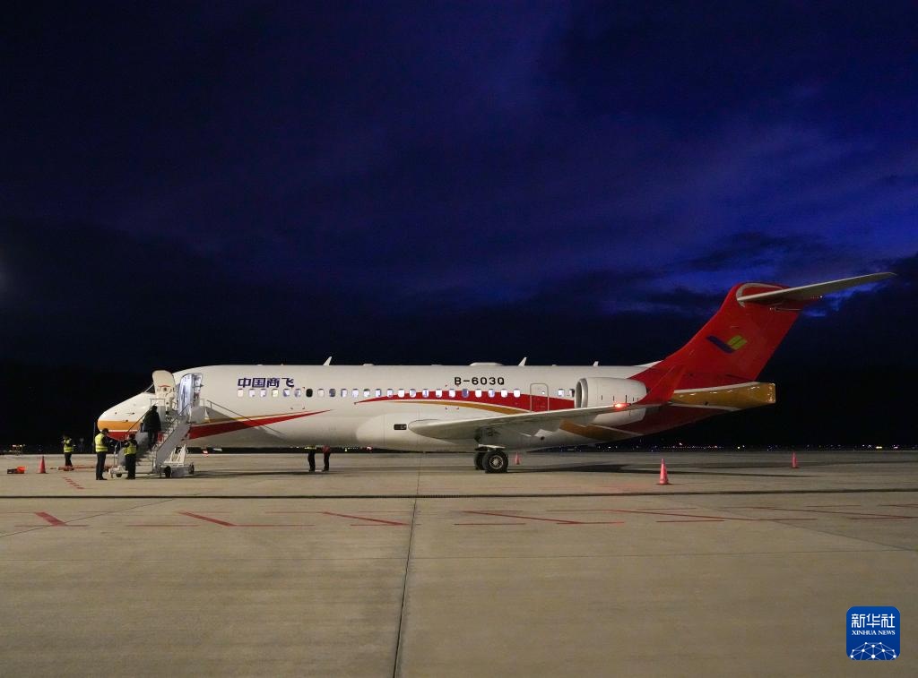 9月21日,国产商用飞机ARJ21飞抵青海果洛玛沁机场。