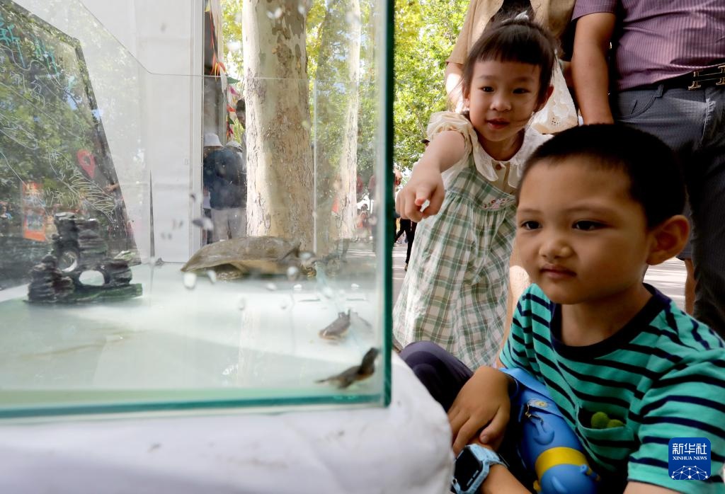 9月22日,丰收节农产品市集上的崇明区横沙岛野生甲鱼吸引小朋友的目光。