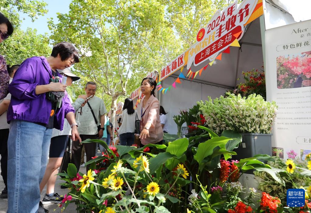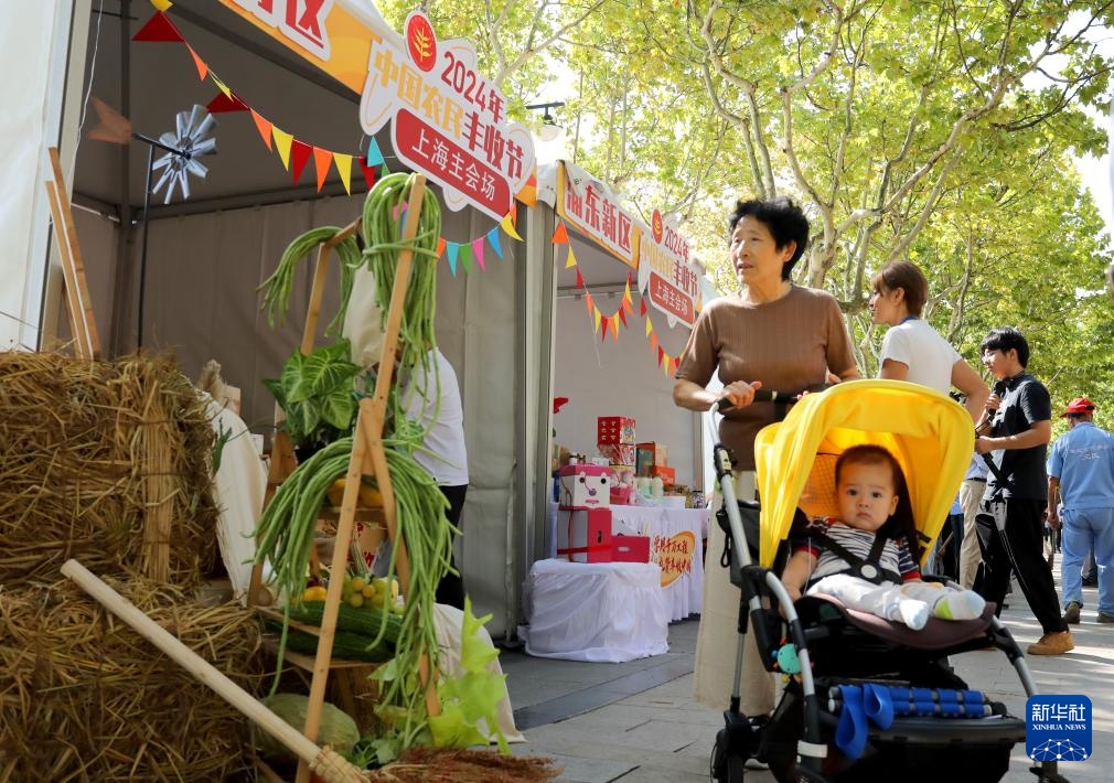 当日,“学用‘千万工程’ 礼赞丰收中国——城乡融合共享丰收”2024中国农民丰收节上海主会场活动在位于浦东新区的世纪公园音乐广场举行。市民游客在活动现场逛农产品市集,品乡土特色食品,享受丰收节的喜悦。