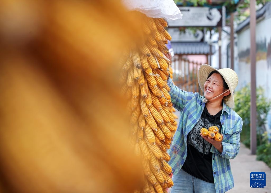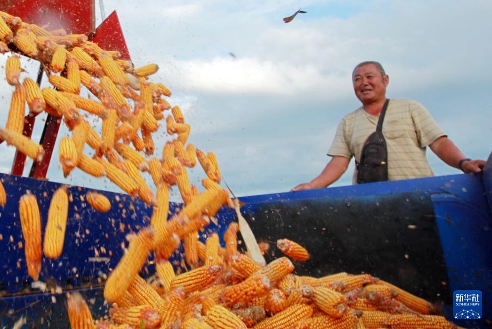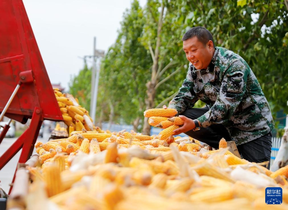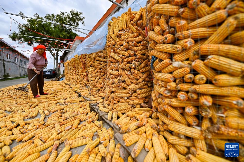 9月21日,在河南省焦作市武陟县大封镇大封村,农民将收获的玉米集中贮藏。