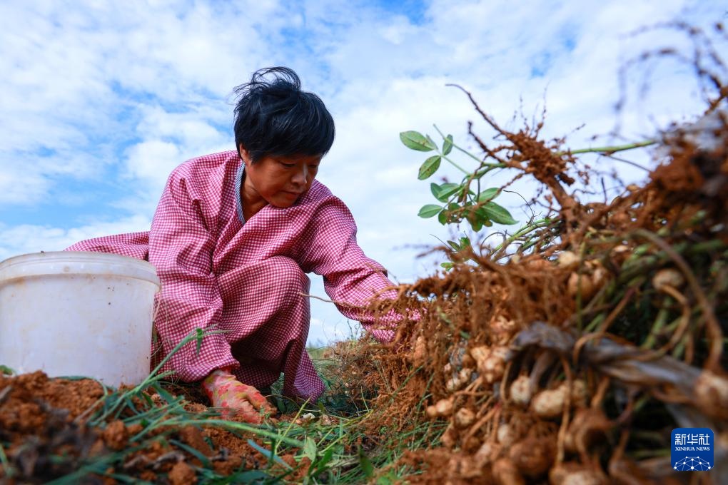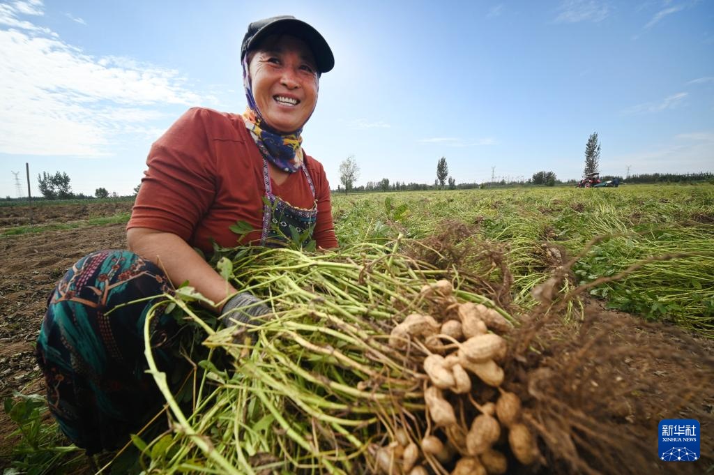 9月21日,在河南省开封市祥符区范村乡葛寨村,农民在收获晚茬花生。