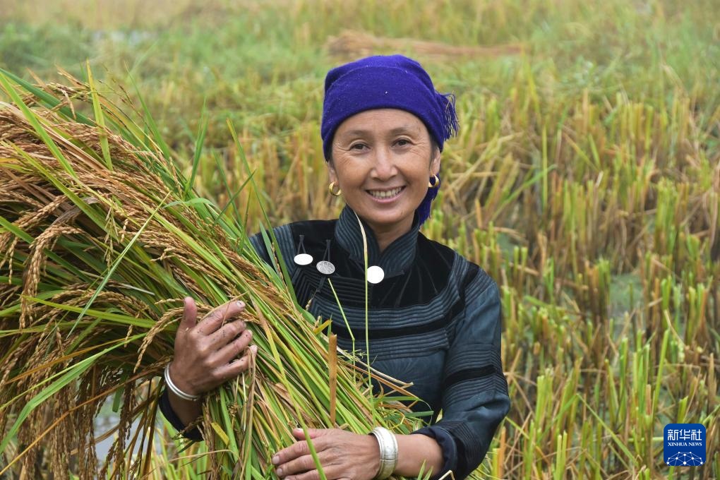 9月22日,在云南省红河哈尼族彝族自治州元阳县,农户在收割水稻。