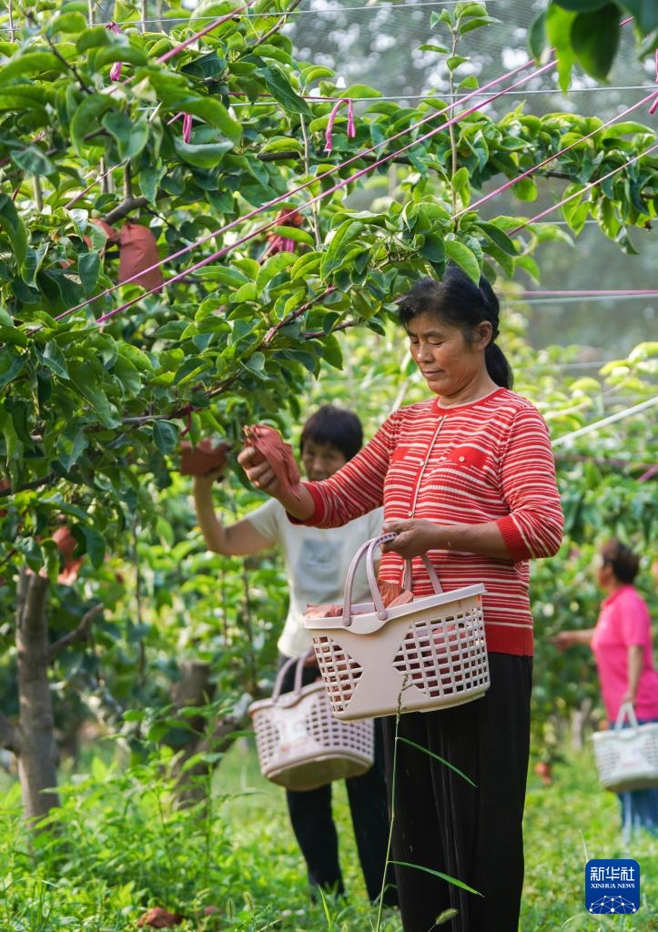 9月19日,在山东省邹平市台子镇惠明农场,果农在采摘新华梨。